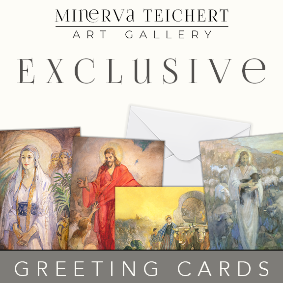 GREETING CARDSThese beautiful cards are available in pre-packs and are blank inside - waiting for your thoughtful massage Rescue of the Lost Lamb - Greeting Card - Minerva Teichert Gallery Exclusive from $18.95 Christ in His Red Robe - Greeting Card - Minerva Teichert Gallery Exclusive from $18.95 Queen Esther - Greeting Card - Minerva Teichert Gallery Exclusive from $18.95 Christ Preaching on Galilee - Greeting Card - Minerva Teichert Gallery Exclusive from $18.95 Three Wise Men - Christmas Card - Minerva Teichert Gallery Exclusive from $18.95 Not Alone - Greeting Card - Minerva Teichert Gallery Exclusive from $18.95